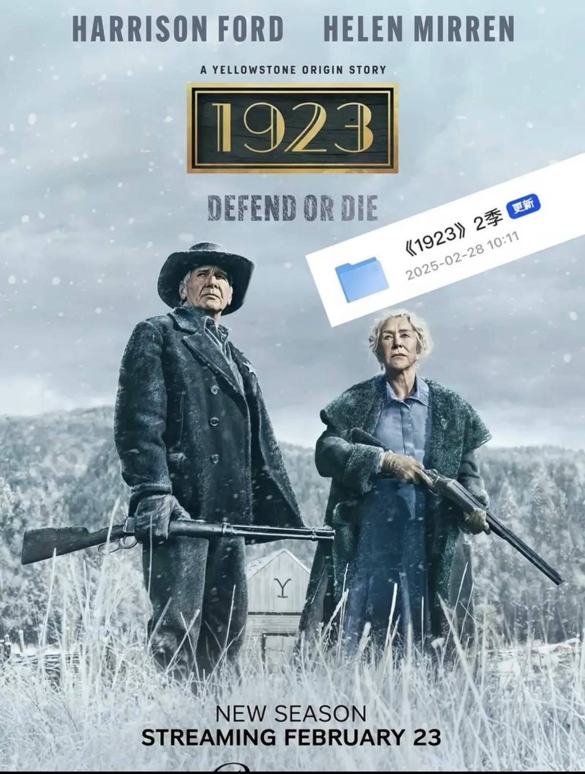 2025年本.理查森执导的西部剧。哈里森·福特与海伦.米伦,布兰登·斯克莱纳,茱莉亚·施莱弗等领衔主演。2025年2月23日首播。